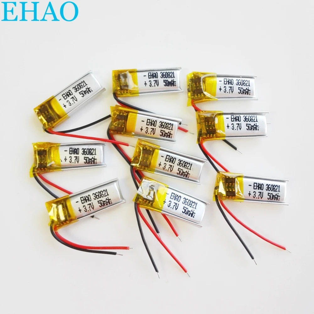 10 Pcs 3 7v 50mah Lithium Polymer Lipo Rechargeable Battery For Mp3 Bluetooth Recorder Headphone Headset 360821 Li Ion Rechargeable Batteryli Polymer 3 7v Aliexpress